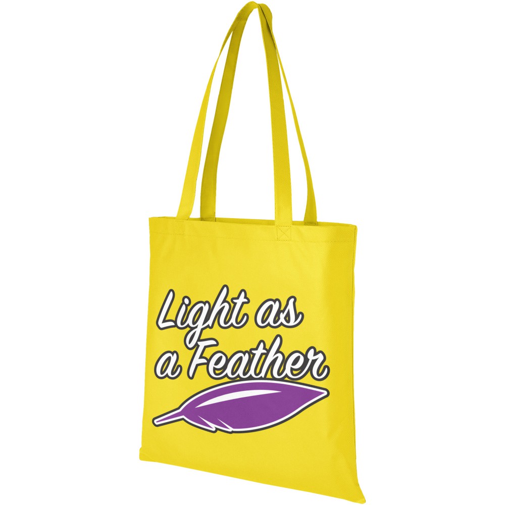 A Zeus nagyméretű, nemszőtt táska tökéletes választás konferenciákra, kiállításokra. Fülek magassága 29,2 cm. Újrahasznosítható anyag. 80 g/m2 nemszőtt polipropilén.