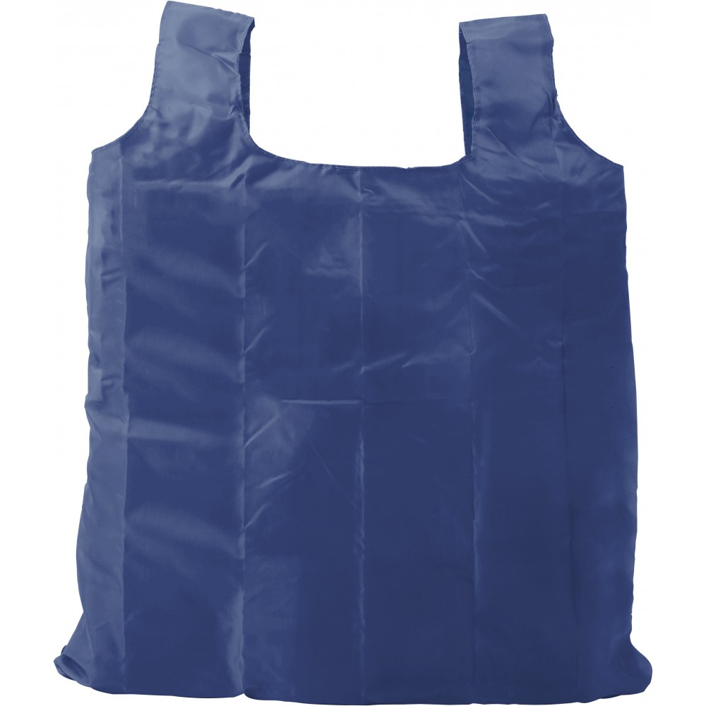 Összecsukható bevásárlótáska övre csatolható tokban. Táska nyitott mérete: 40 x 45 cm, a fül 12.5 cm hosszú. 190T poliészter.