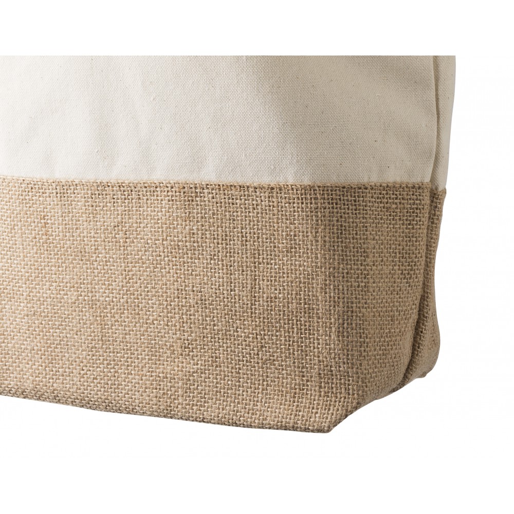 Pamut bevásárlótáska juta alsó résszel, hosszú sodort, pamut fülekkel. 280 g/m2 pamutvászon anyag.