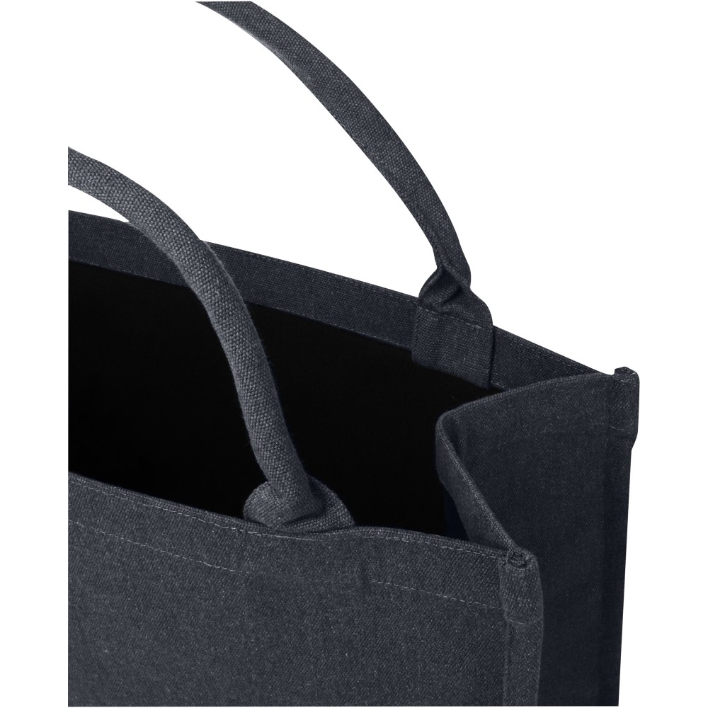 A Page újrahasznosított bevásárlótáska tökéletesen alkalmas a mindennapi tárgyak tárolására, utazásokhoz és bevásárlásokhoz. Rövid, de erős fülekkel ez a táska hosszú ideig kényelmesen hordozható. A táska Cyclo újrahasznosított szálakat tartalmaz, ahol előválogatott hulladékot használnak, amely meghatározza a fonal színét. Minden táskához egy Aware nyomjelző is tartozik. Ez az innovatív funkció lehetővé teszi a felhasználók számára, hogy egy QR-kód segítségével nyomon követhessék a termék eredetét és útját, növelve az ellátási lánc átláthatóságát és elősegítve a termék és a gyártási folyamat közötti szorosabb kapcsolatot. Méret: 42 x 18 x 35 cm.