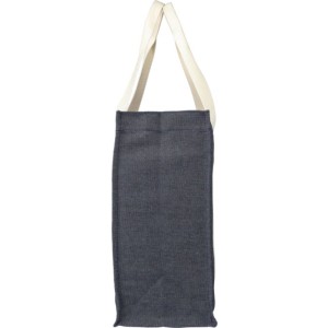 Bevásárlótáska 15 cm-es talpszélességgel és hosszú vászon fogantyúkkal. A farmer anyag 65% poliészterből és 35% pamutból készült. Egy nyomógombbal zárható. A farmer színtartóssága 2-3 szintig terjed. Anyaga: 280 g/m2.
