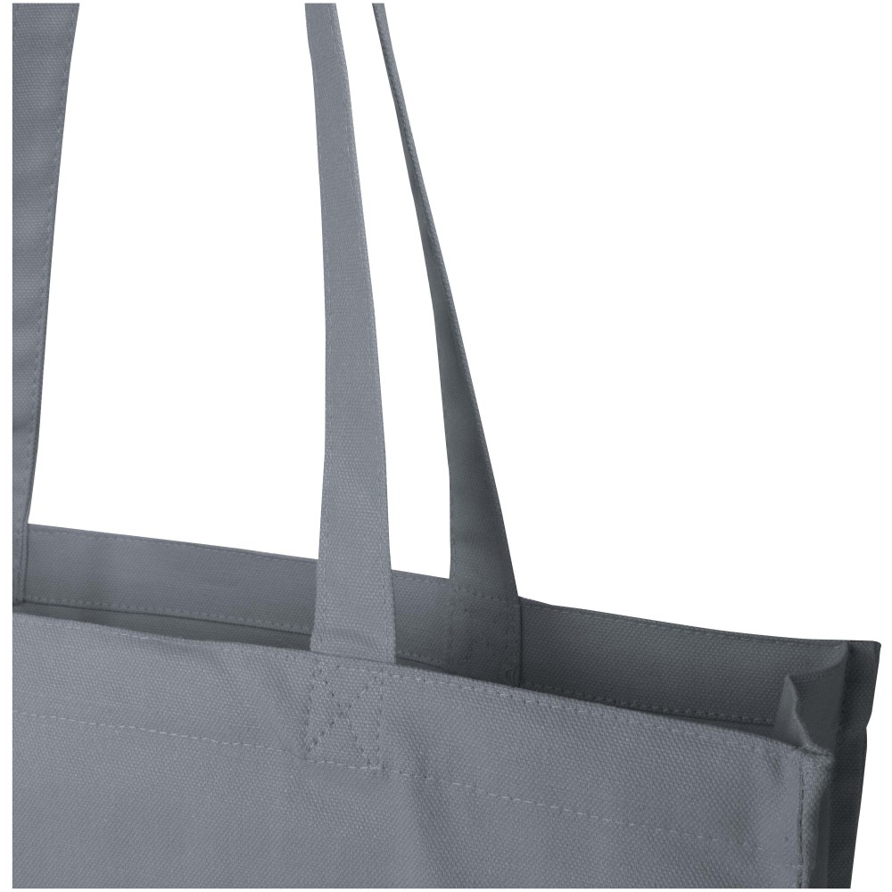 A Florida oldalvarrott vászontáska 100%-ban GRS tanúsítvánnyal rendelkező, 270 g/m2 súlyú újrahasznosított pamutból készült, amely felelős és tartós választást biztosít mindennapi használatra. 14 literes űrtartalmával és 30 cm hosszú füleivel tökéletes választás bevásárlásokhoz vagy könyvek és egyéb alapvető dolgok kényelmes szállításához.
