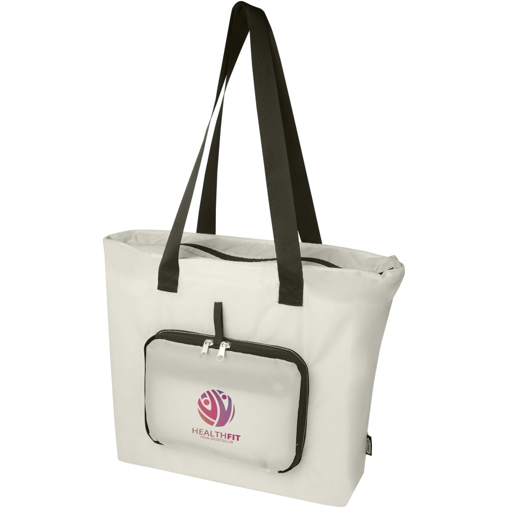 Ez a könnyű, mégis tartós bevásárlótáska a kényelem és praktikusság jegyében készült. Könnyedén a kompakt tasakba hajtható, amelyen hurok található a kényelmes hordozás érdekében - tökéletes rohanós napokra, spontán bevásárlásokhoz vagy tartalék táskaként. Tágas cipzáras főrekesszel, cipzáras elülső zsebbel és két hosszú, sima szövött anyagból készült fogantyúval rendelkezik. PVC-mentes újrahasznosított poliészterből készült. Űrtartalma: 16 liter.