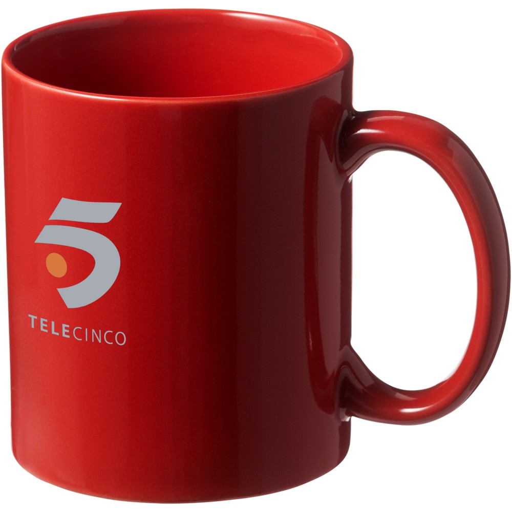 Klasszikus 330 ml-es kerámia bögre. Nem szivárgásmentes. Szénsavas italokkal is használható. Mosogatógépben mosható és mikrohullámú sütőben történő melegítésre alkalmas. Fehér kartondobozban szállítjuk.