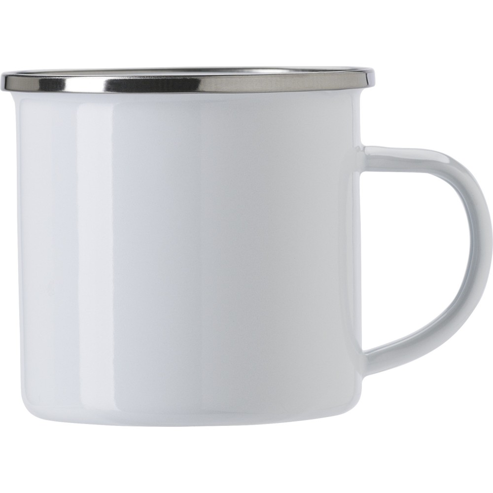 Rozsdamentes acél peremmel ellátott zománcozott bögre. Csomagolása egyenként barna kartondoboz. Űrtartalom: 350 ml.