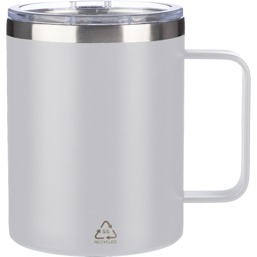 Rozsdamentes acél duplafalú (S/S304) bögre (300 ml) matt felülettel. PS fedél a felső oldalon zárással. A bögre elülső oldalán újrahasznosított rozsdamentes acél logó jelzi az alapanyag milyenségét. Barna kartondobozba egyedileg csomagolva érkezik. Űrtartalom: 300 ml.