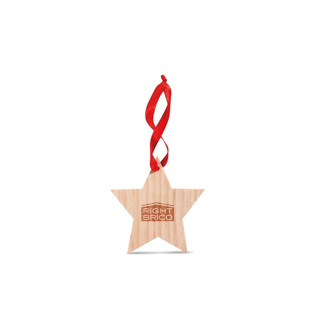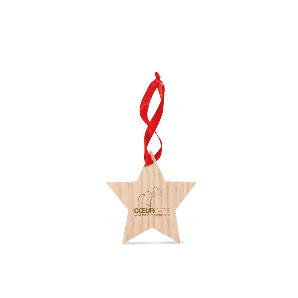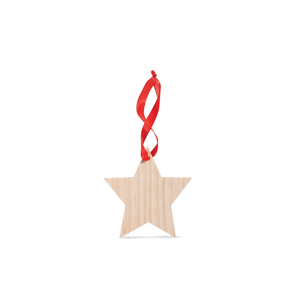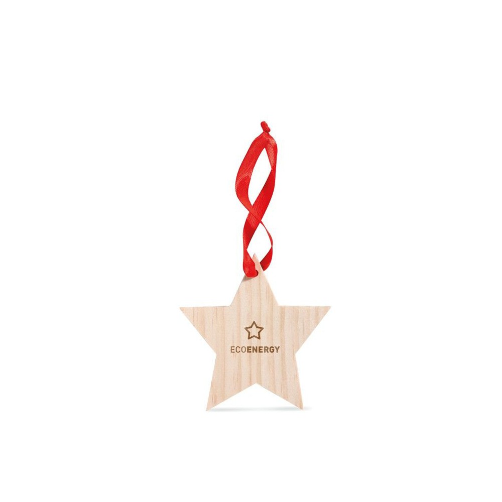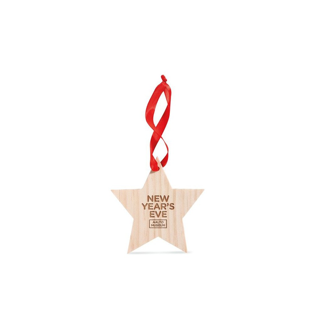 Csillag alakú karácsonyfadísz piros szalaggal.