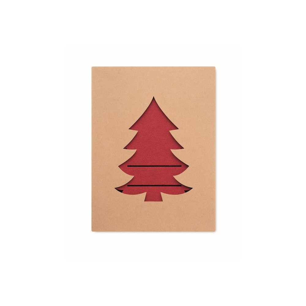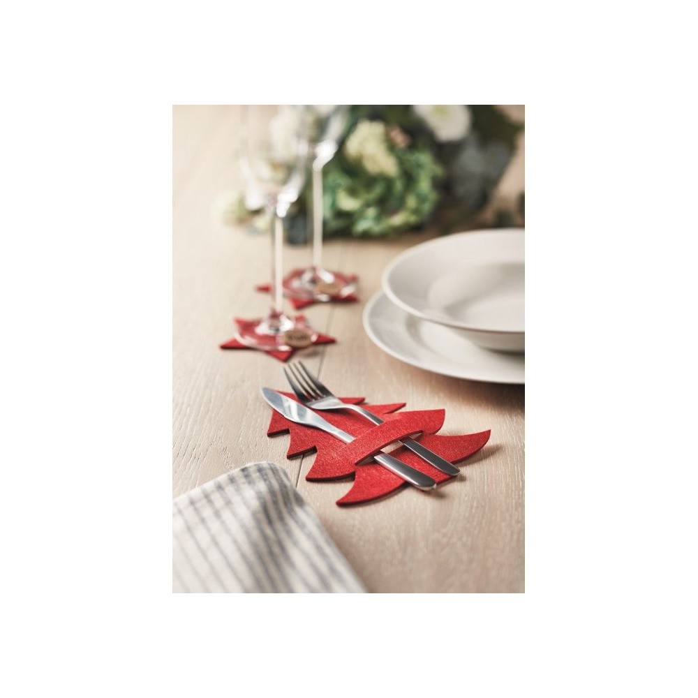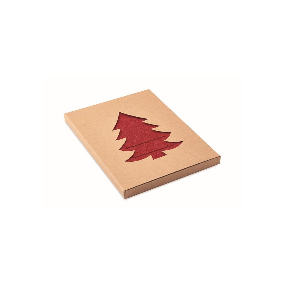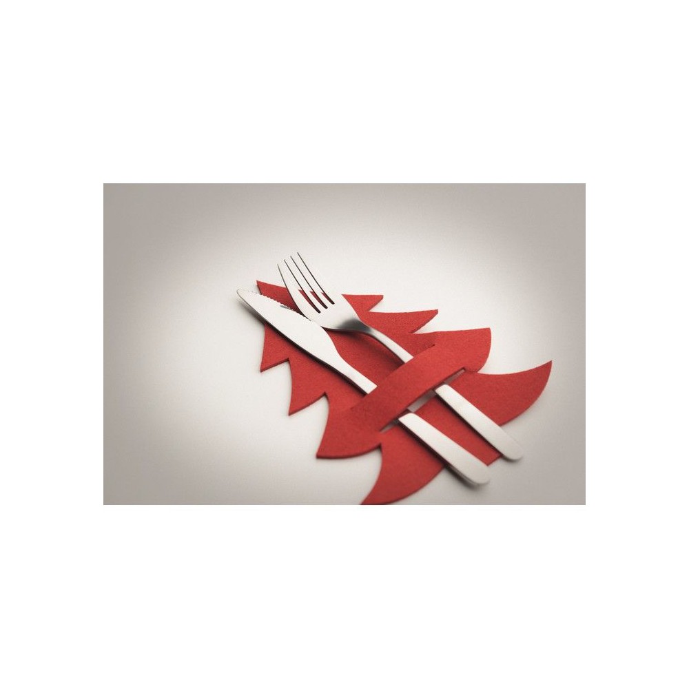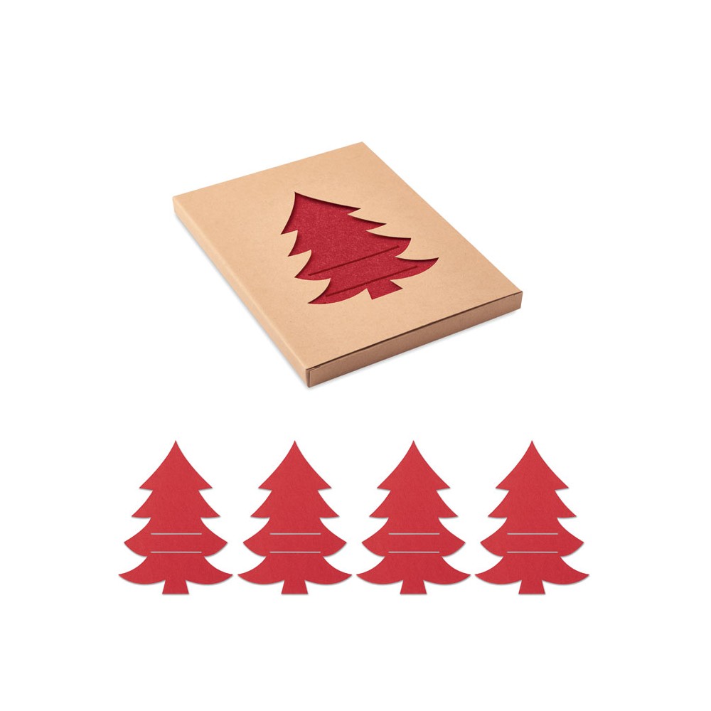 4 darab RPET filcből készült, karácsonyfa alakú evőeszköztartóból álló készlet, kraftpapír dobozban.