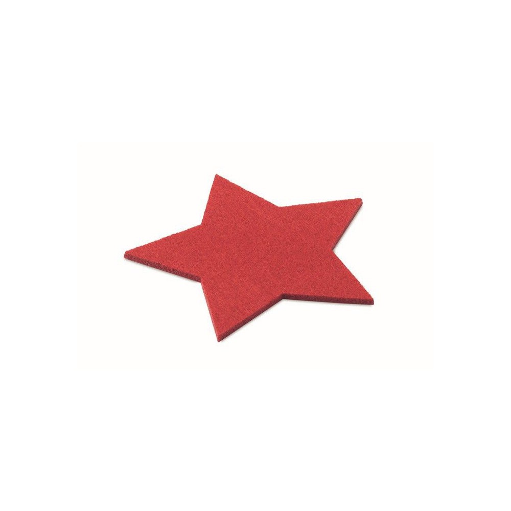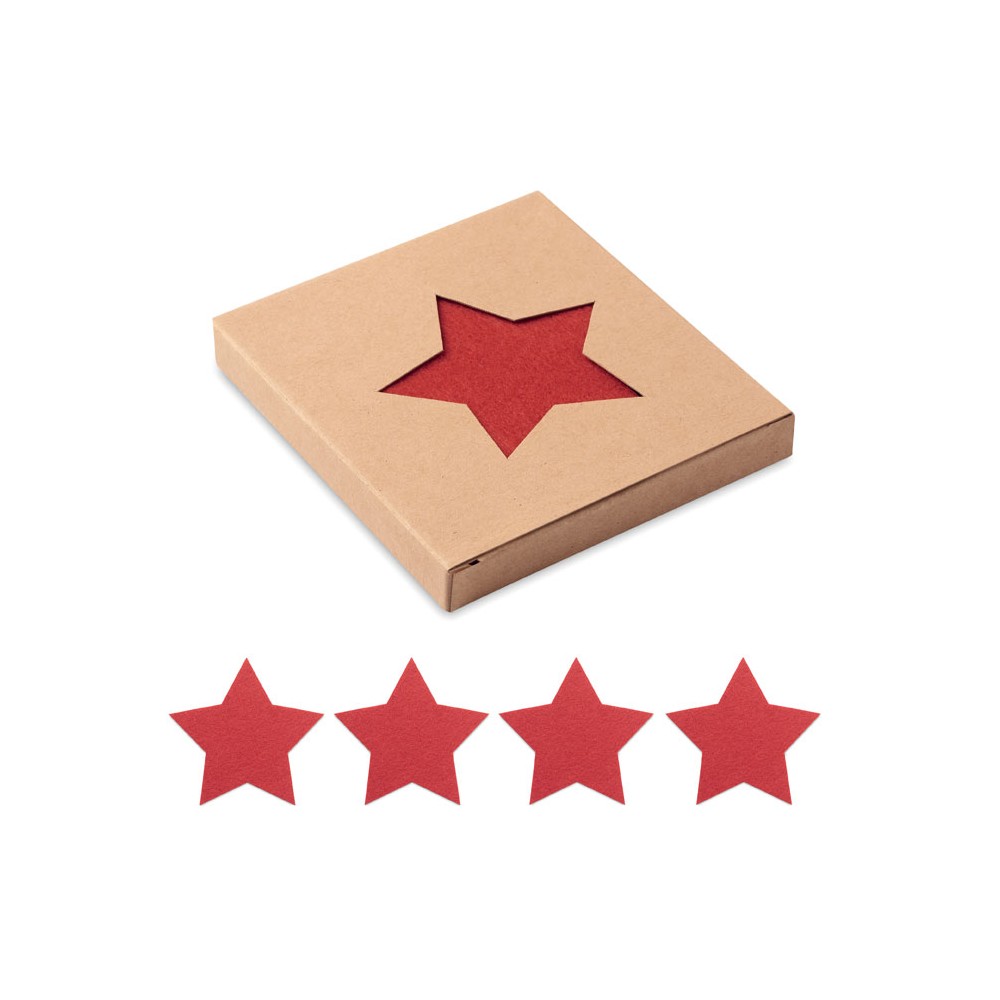 4 darab RPET filcből készült, csillag alakú poháralátétből álló készlet, kraftpapír dobozban.