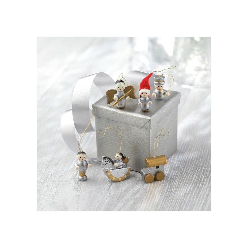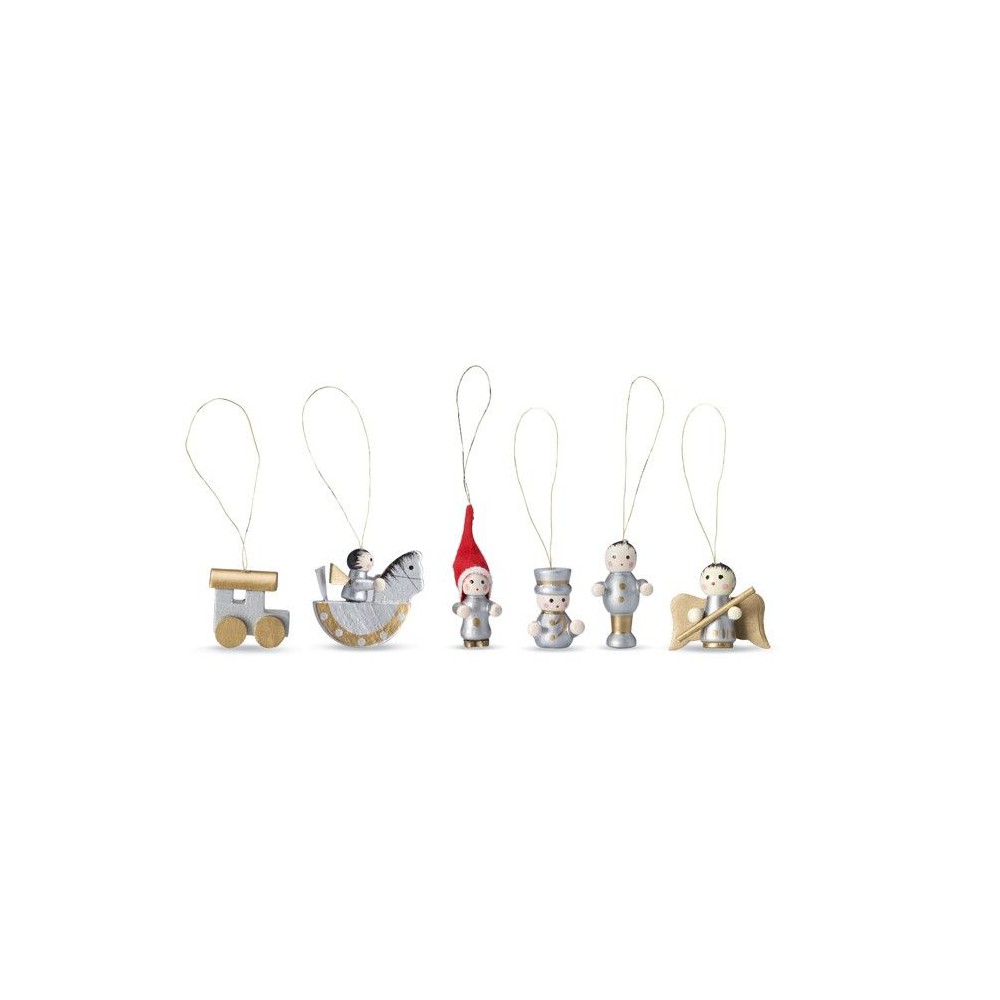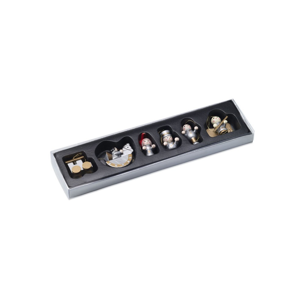 6 darabos fa karácsonyfadísz szett. Átlátszó fedelű kartondobozban.