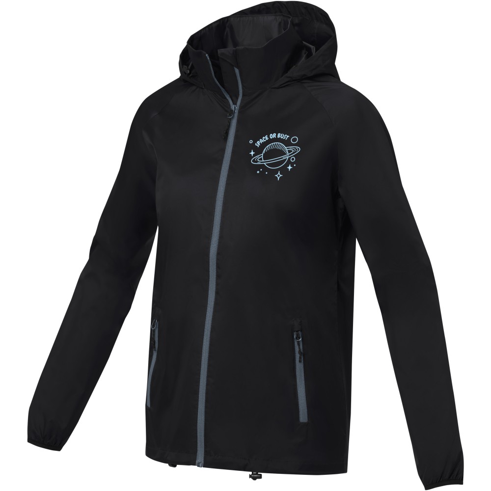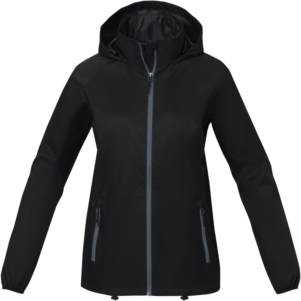 Könnyű női dzseki. Egyedi belső emblémázási lehetőségek. Letéphető, kivágható címke a címke nélküli kényelemért. 500 mm vízálló. Raglan ujjak. Behajtható kapucni. Fordított cipzár. Elülső zsebek cipzárral. Belső zseb. Állítható húzózsinór megállítóval az alsó szegélyben és a kapucniban. 280T ripstop 100% nylonból, 72 g/m2, bélés, 210T taft 100% poliészterből, 60 g/m2.