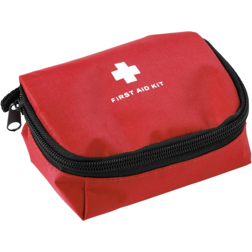 Elsősegélykészlet nylon tokban. Tartalma: kötszerek, ragtapaszok, fertőtlenítő kendők és olló.