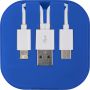 USB töltőkábel műanyag tokban. USB, USB-C és micro USB csatlakozóval rendelkezik. A micro USB csatlakozó átváltható Lightning csatlakozóra. A kábel hossza: kb. 24 cm. ABS, PVC, PS műanyag.