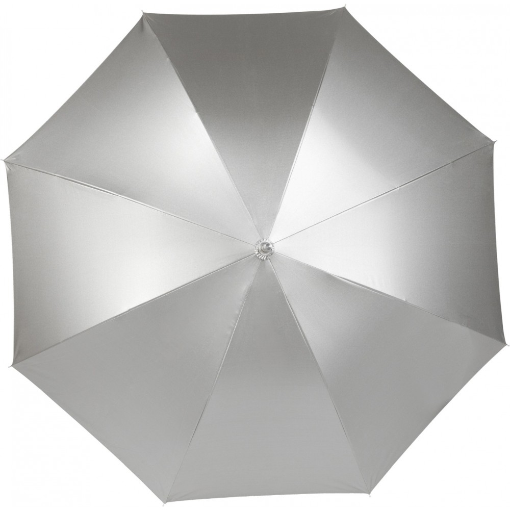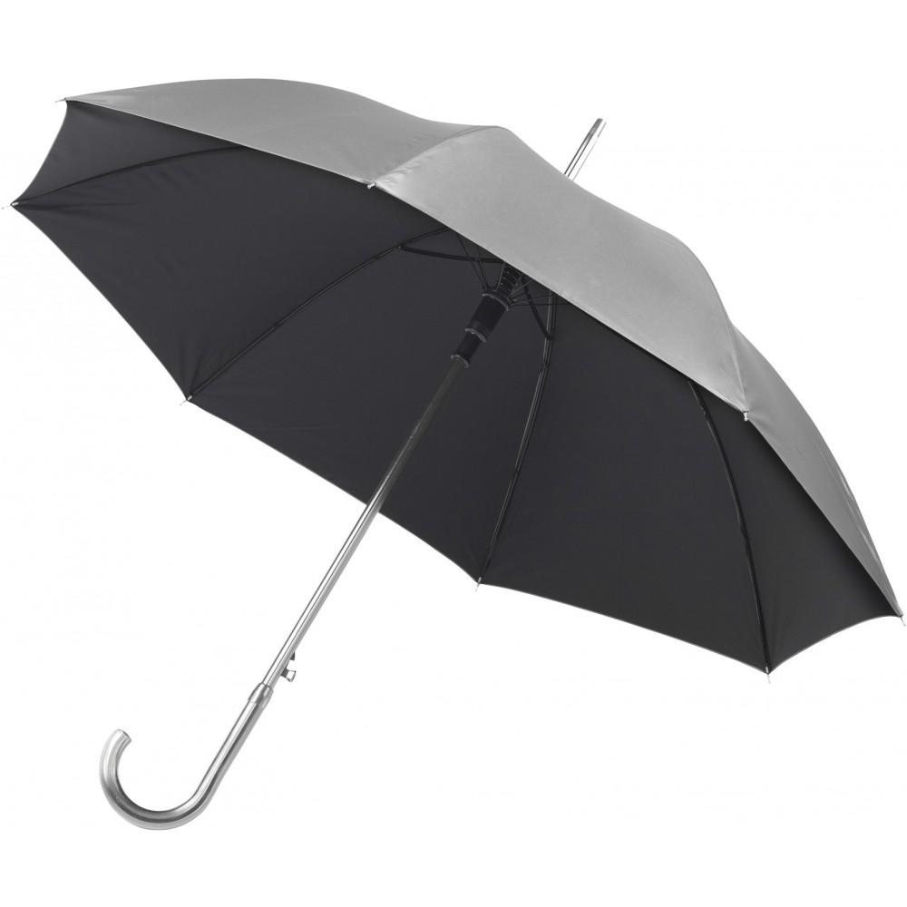 Automata esernyő. 8 ezüstözött panellel, selymes belső felülettel, ezüstözött alumínium kerettel és hajlított nyéllel. Nylon.