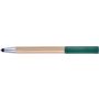 Golyóstoll és érintő kék tollbetéttel, műanyag klipsszel és nyomógombbal. A klipsz nyomógombként funkcionál, és okostelefon-állványként is használható. ABS, bambusz.