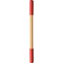 Bambusz végtelenített ceruza és golyóstoll. Az egyik oldalon végtelenített ceruza, a másikon golyóstoll, mindkettő színes karton kupakkal. Kék tollbetéttel.