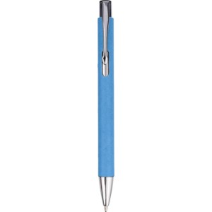 Újrahasznosított kartonból készült golyóstoll krómozott részletekkel. Műanyag tollhegy és nyomógomb, fém klipsz. Kb. 800 méter íráshossz. Fekete tollbetéttel.