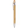 Bambusz golyóstoll krómozott fém részletekkel. Krómozott műanyag tollheggyel és fém klipsszel. Színes érintő a nyomógombon. Kb. 800 méter íráshossz. Kék tollbetéttel.