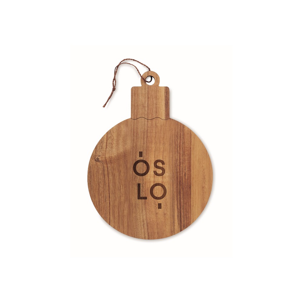 Karácsonyi gömbdísz alakú akáciafa tálalódeszka, PU zsinórral. A fa természetes anyag, termékenként szín- és méretbeli eltérések jelentkezhetnek, ami befolyásolhatja a dekoráció végső eredményét. FSC® -certified | FSC 100%, W16.3, FSC-C213206