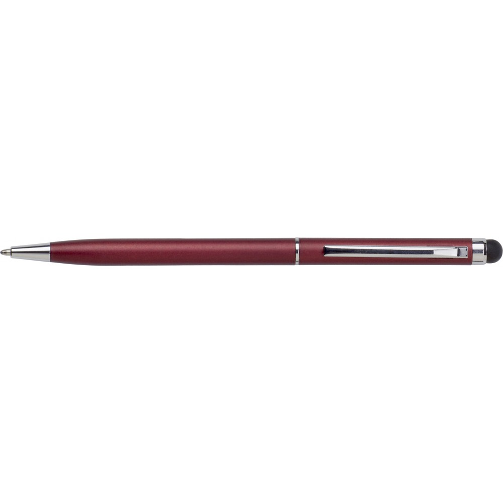 Alumínium golyóstoll érintővel, kék tollbetéttel, bordó
