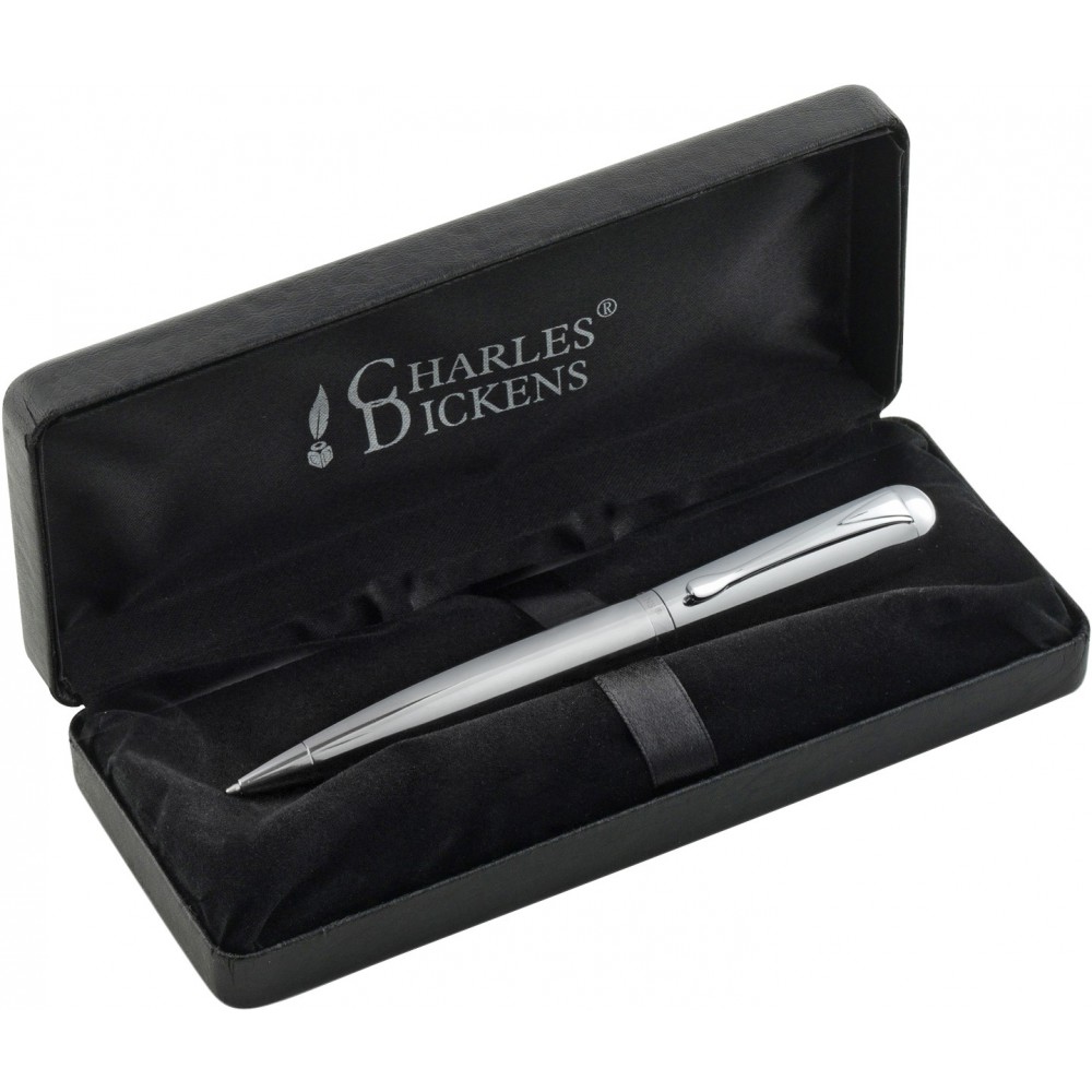 Charles Dickens fém golyóstoll csavaros mechanikával, fekete tollbetéttel, díszdobozban.