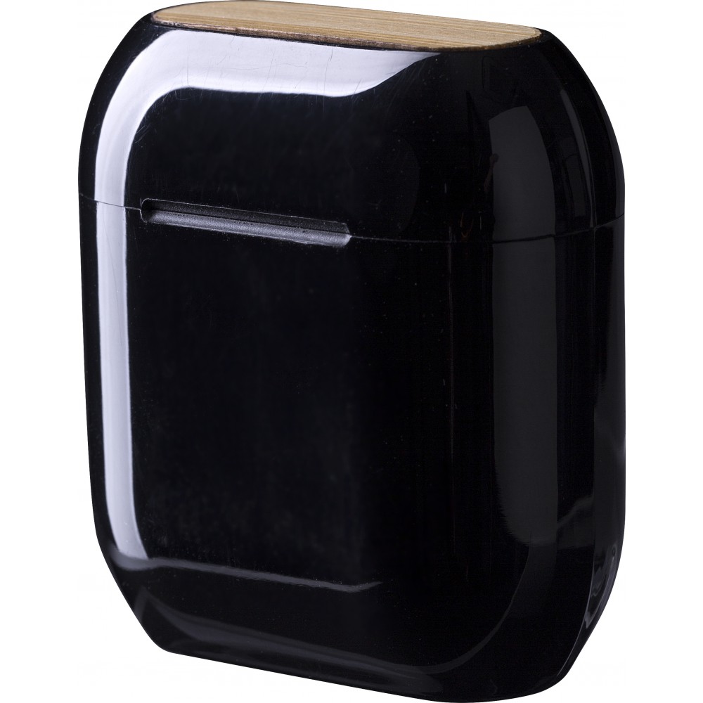 5.1 vezeték nélküli fülhallgató ABS anyagból, bambusz dekorációval a tetején. Fülhallgató kapacitása 30 mAh, tokja 200 mAh. 1 óra töltési idő, 6 óra lejátszási idő (zene), 4 óra lejátszási idő hívás funkcióban.