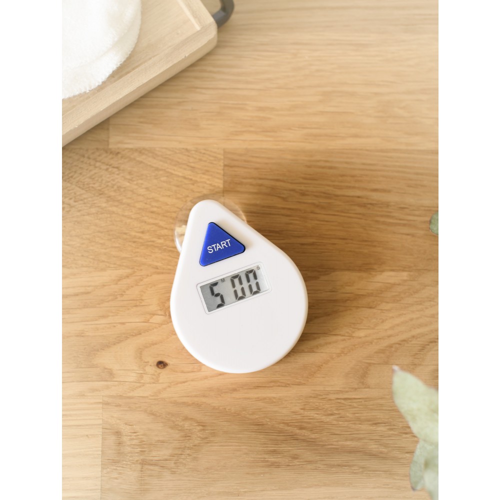 Digitális zuhanyidő-mérő tapadókoronggal és nyomógombbal az elülső oldalon. ABS műanyag.