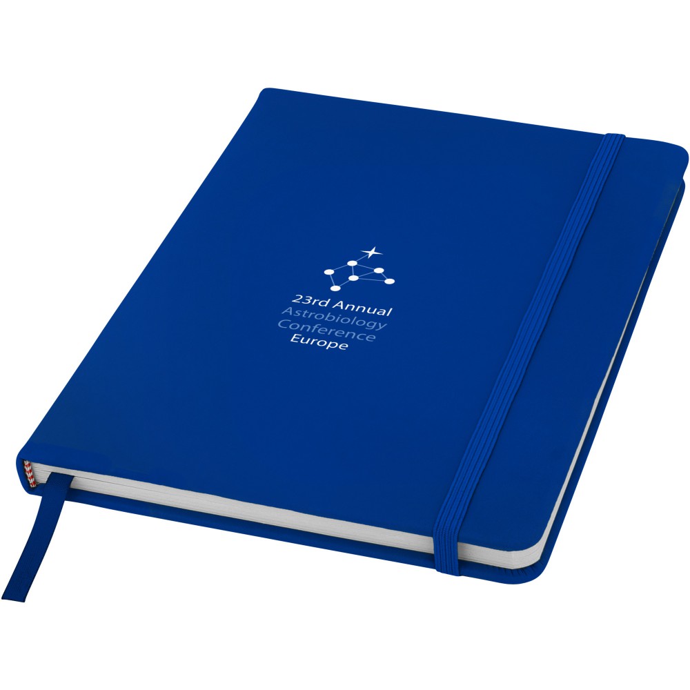 A/5 -ös jegyzetfüzet színben hozzáillő gumipánttal és jelölőszalaggal. 96 lapos.( (60g/m2). Sima lapok.