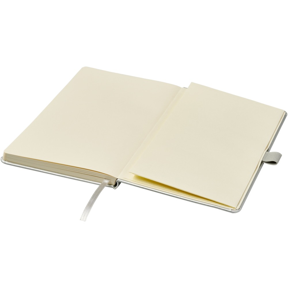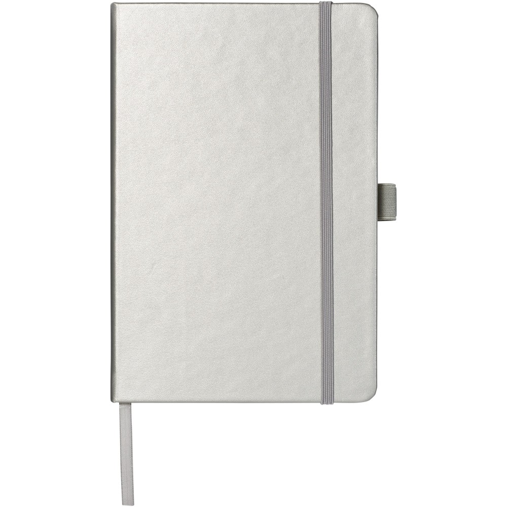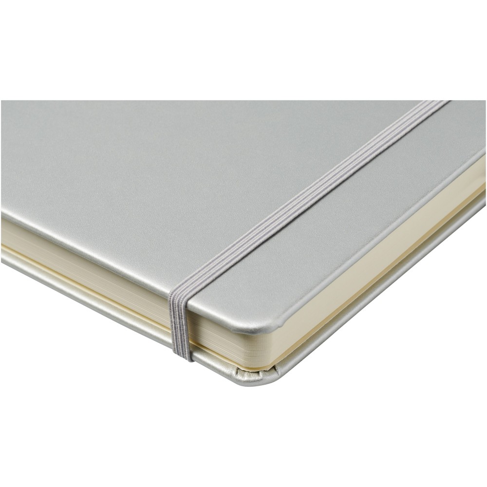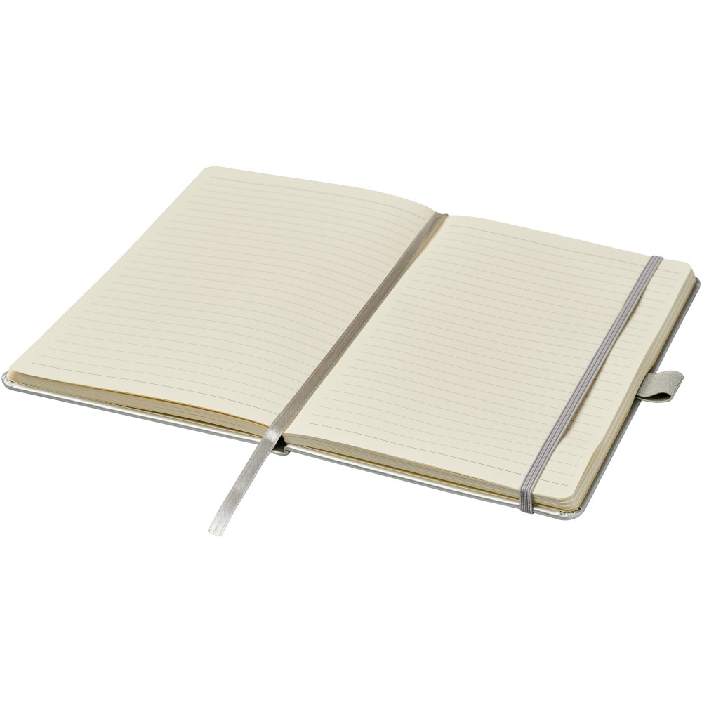 Műbőr A5-ös (14,2 cm x 21,4 cm) jegyzetfüzet gumiszalaggal, szalagjelölővel, tollhurokkal és harmonika hátsó zsebbel. 96 db vonalas krémszínű lapot tartalmaz (80 g/m2).