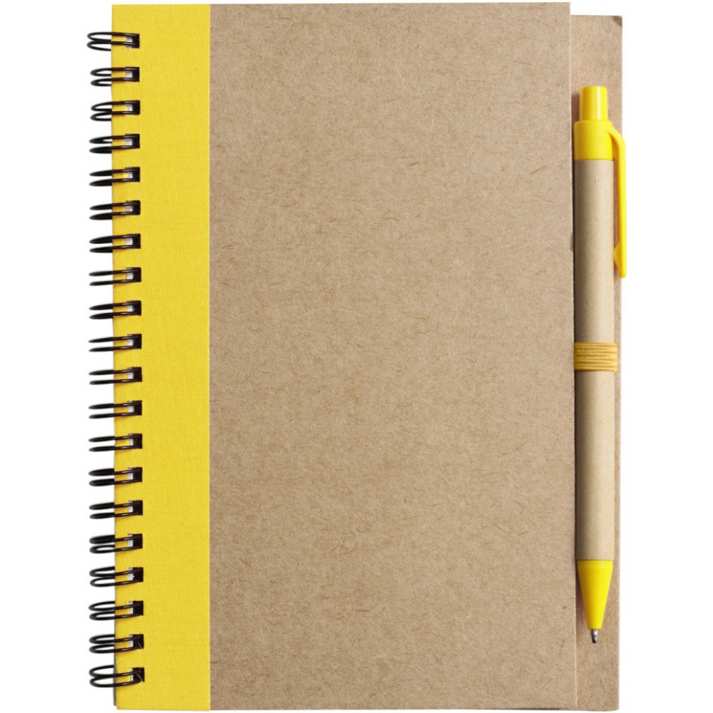 Újrahasznosított spirálfüzet tollal, 60 lapos, sárga