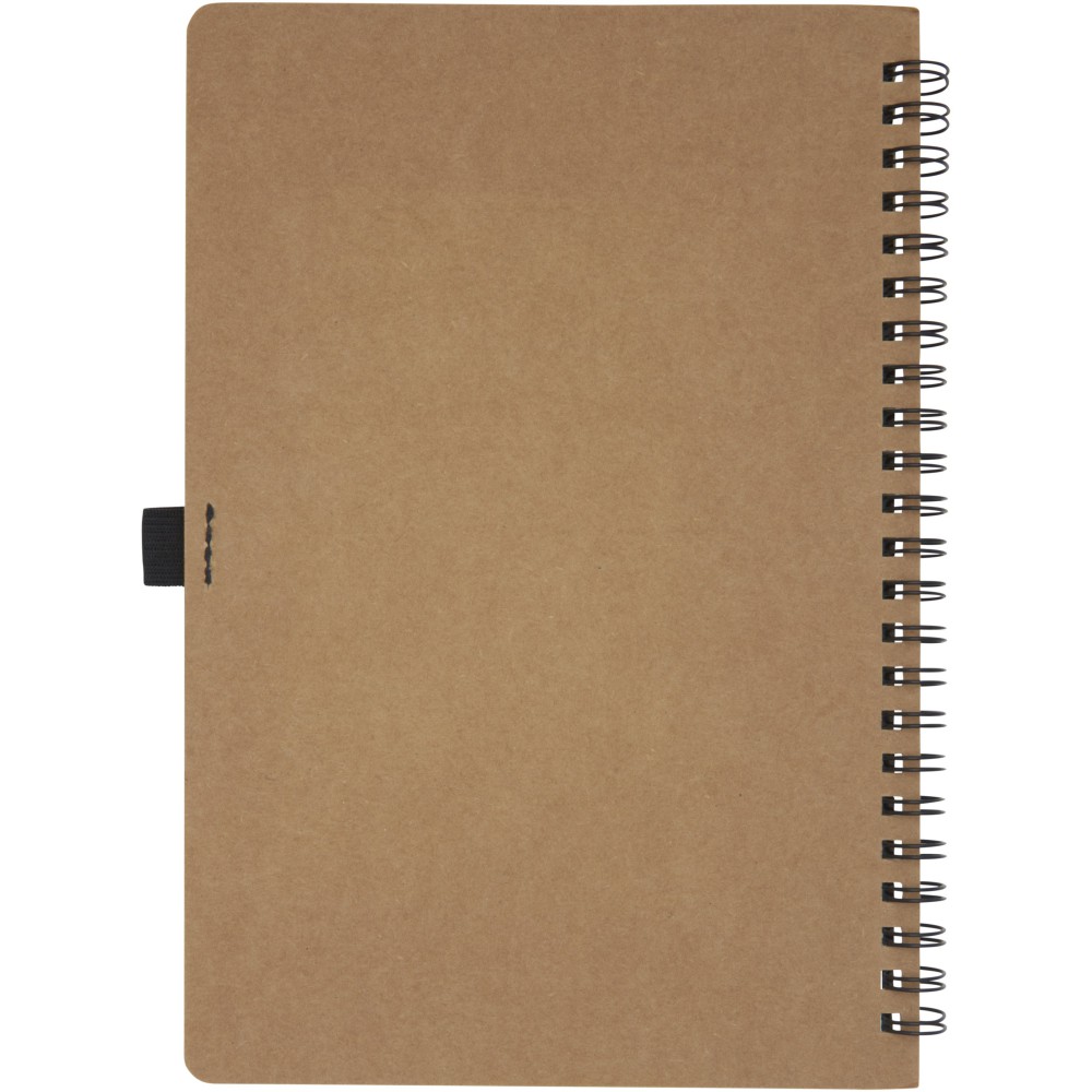 A5 méretű spirálfüzet újrahasznosított karton fedéllel, tollhurokkal. 70 db 60 g / m2 vonalas kőpapír lapok. A kőpapír 100% famentes és a gyártási eljárás során kevesebb energiát használnak fel, mint az újrahasznosított vagy új papír előállítása esetében. A papír vízálló és szakadásálló, természetes fehér színű (nem fehérített). Újrahasznosított karton, kőpapír.