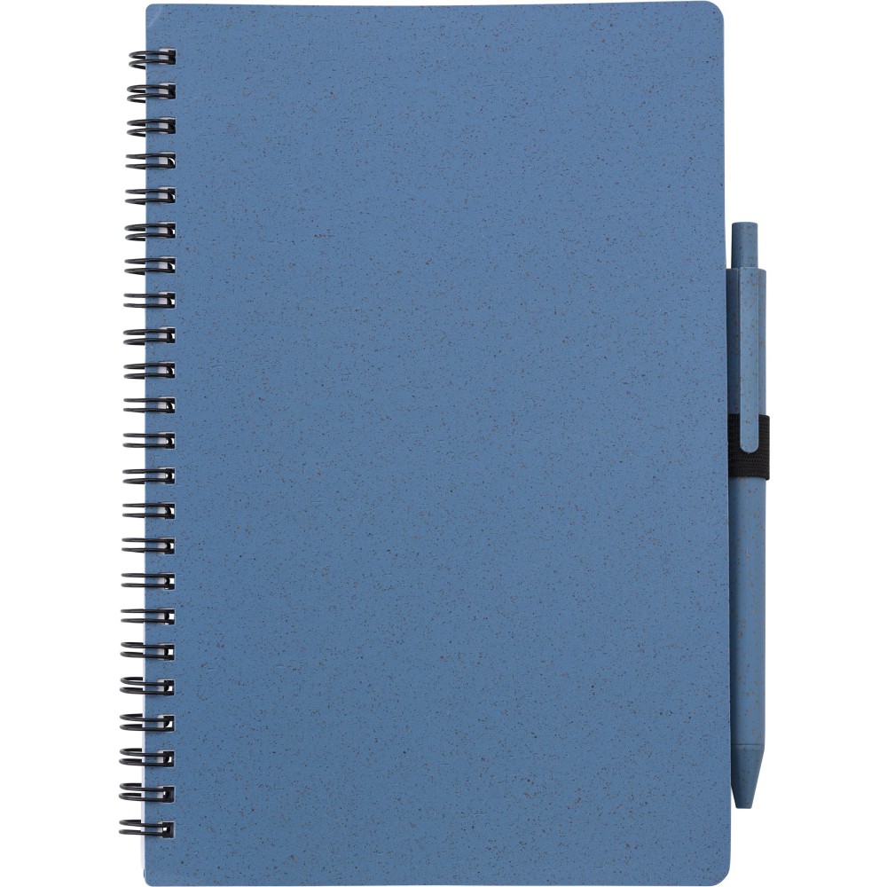 Szalma és PP műanyag felhasználásával készült füzet és golyóstoll (kék tollbetéttel). 70 vonalas lap. Kb. A5-ös méret.