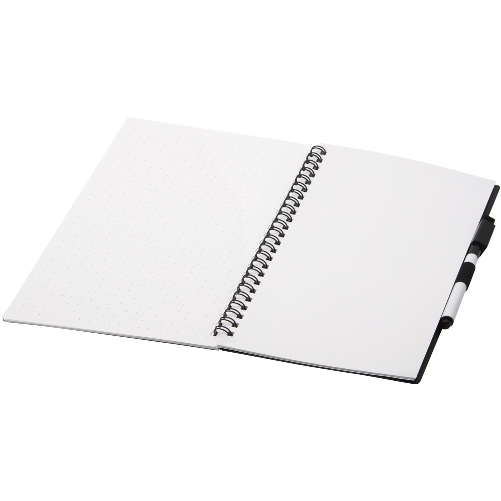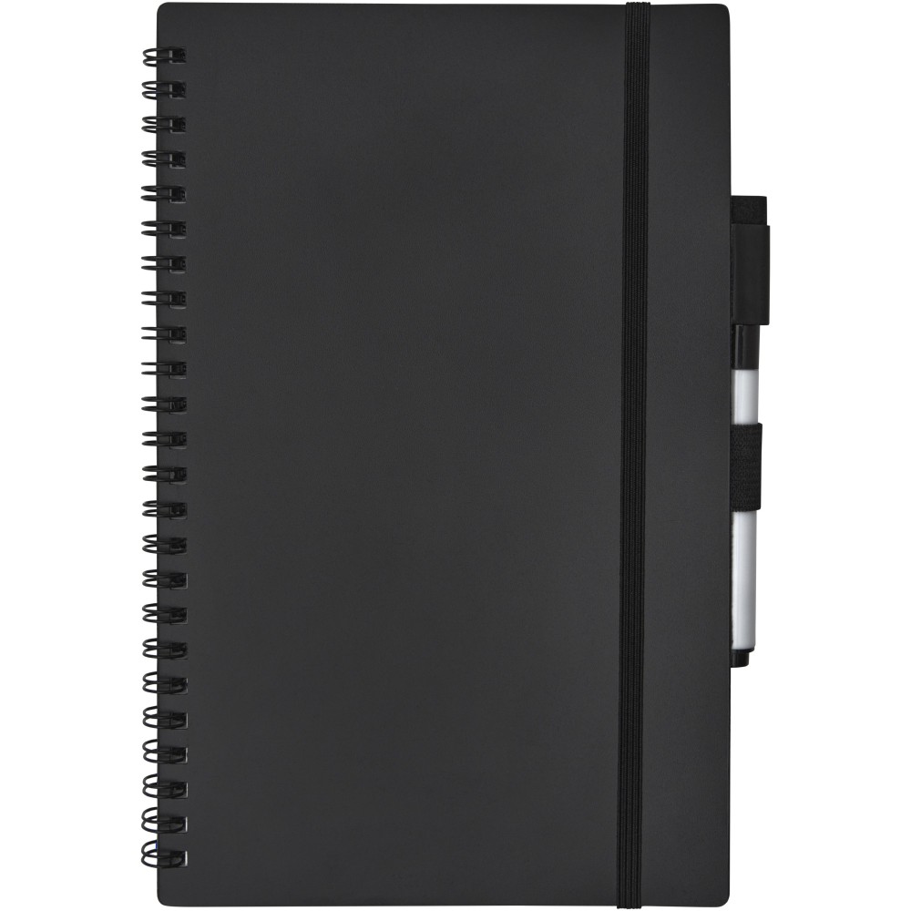Fenntartható alapanyagból készült füzet a papírfelhasználás csökkentésére összpontosít a környezet kímélése érdekében. Egy idő után jegyzetelés, rajzolás vagy ötletelés után az oldalak megtisztíthatók a markeren lévő radírral, hogy újra felhasználhassák az oldalakat. Szokásos szövet kendővel is tisztítható (nem tartozék). 20 lapot (40 oldal) tartalmaz, félig pontozott és félig üres elrendezéssel, valamint egy fekete szövegkiemelőt.