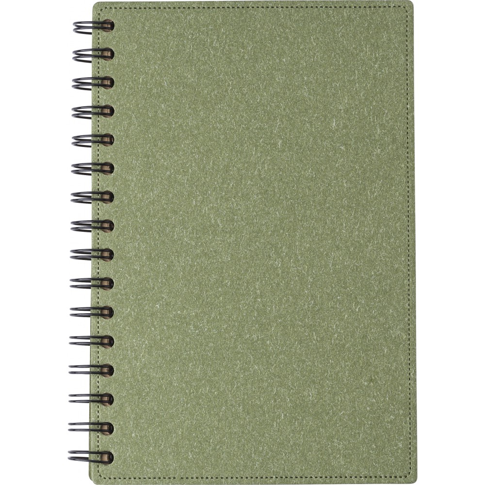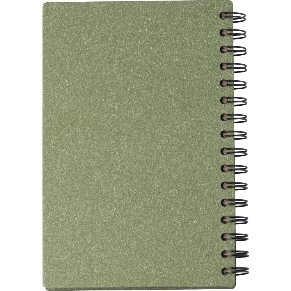 Újrahasznosított kartonból készült, keményfedeles spirálfüzet 80 vonalas, újrahasznosított barna papírlappal. Lapok minősége: 65 g/m2. Az újrahasznosított alapanyagra utaló logó minden lapon látható.