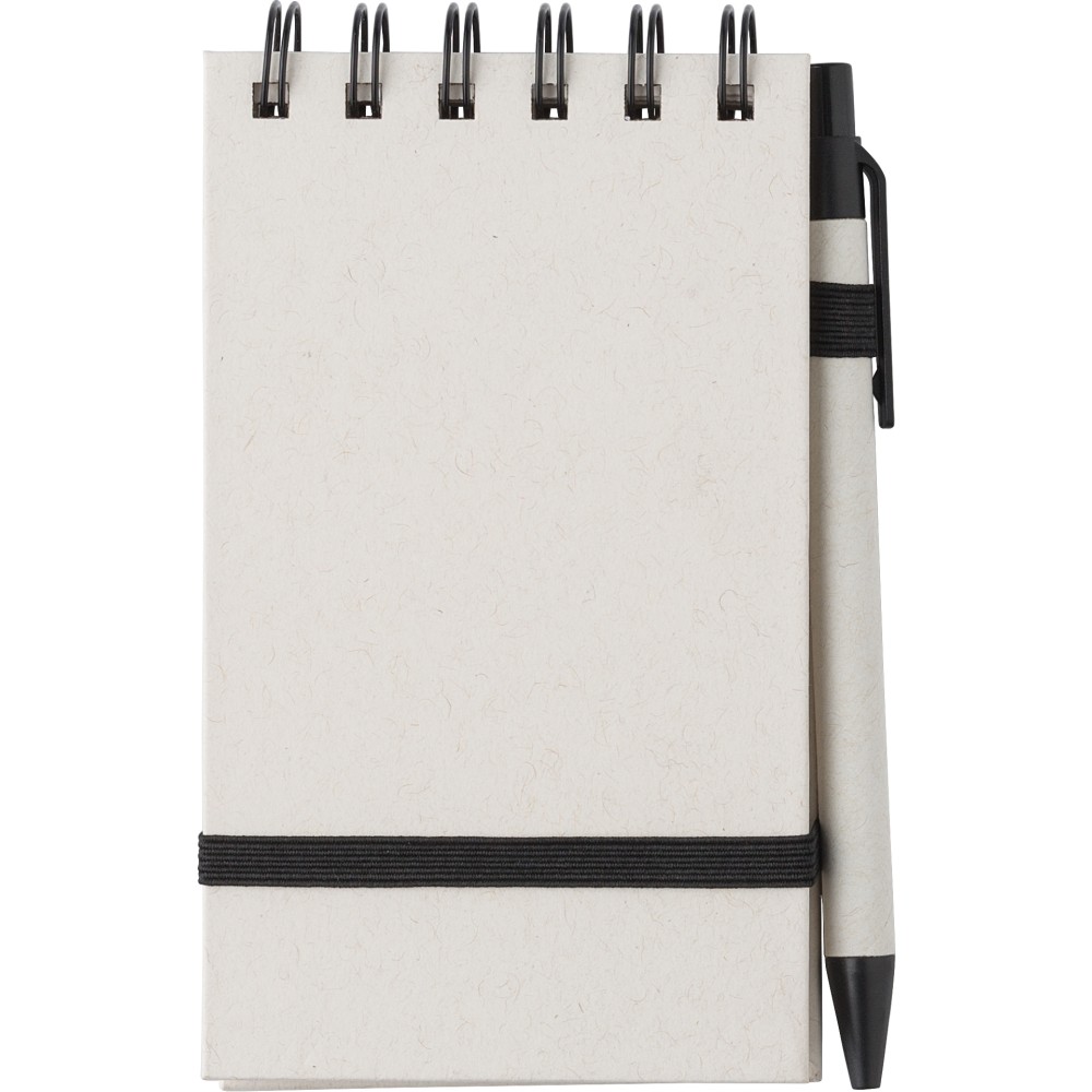 Újrahasznosított tejesdobozból készült A6-os jegyzetfüzet, 70 lappal, gumiszalaggal és tollhurokkal. A toll kék tollbetéttel érkezik. 70%-ban újrahasznosított tejeskartonból és 30%-ban újrahasznosított (sima) papírból készült.