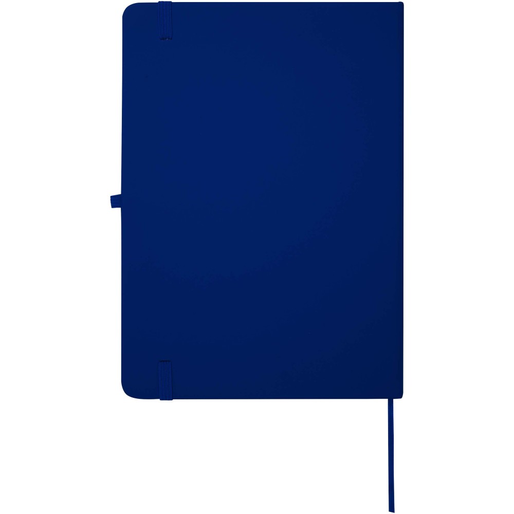 A Spectrum Plus A5 keményfedeles jegyzetfüzet lekerekített sarkokkal nemcsak az irodai mindennapok elengedhetetlen kelléke, hanem remek lehetőség márkád népszerűsítésére is. A jegyzetfüzet puha tapintású borítóval rendelkezik és 80 vonalas, krémszínű, 70 g/m2-es lapból áll, amely tökéletes gyors ötletek vagy hosszabb jegyzetek rögzítésére. A jegyzetfüzet tolltartó hurokkal, gumiszalagos záródással, könyvjelzővel és harmonikazsebbel van ellátva.