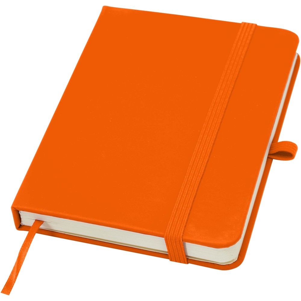 A Spectrum Plus A6 keményfedeles jegyzetfüzet lekerekített sarkokkal nemcsak az irodai mindennapok elengedhetetlen kelléke, hanem remek lehetőség márkád népszerűsítésére is. A jegyzetfüzet puha tapintású borítóval rendelkezik és 80 vonalas, krémszínű, 70 g/m2-es lapból áll, amely tökéletes gyors ötletek vagy hosszabb jegyzetek rögzítésére. A jegyzetfüzet tolltartó hurokkal, gumiszalagos záródással, könyvjelzővel és harmonikazsebbel van ellátva.