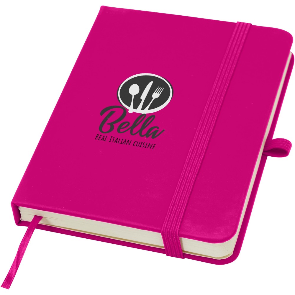 A Spectrum Plus A6 keményfedeles jegyzetfüzet lekerekített sarkokkal nemcsak az irodai mindennapok elengedhetetlen kelléke, hanem remek lehetőség márkád népszerűsítésére is. A jegyzetfüzet puha tapintású borítóval rendelkezik és 80 vonalas, krémszínű, 70 g/m2-es lapból áll, amely tökéletes gyors ötletek vagy hosszabb jegyzetek rögzítésére. A jegyzetfüzet tolltartó hurokkal, gumiszalagos záródással, könyvjelzővel és harmonikazsebbel van ellátva.