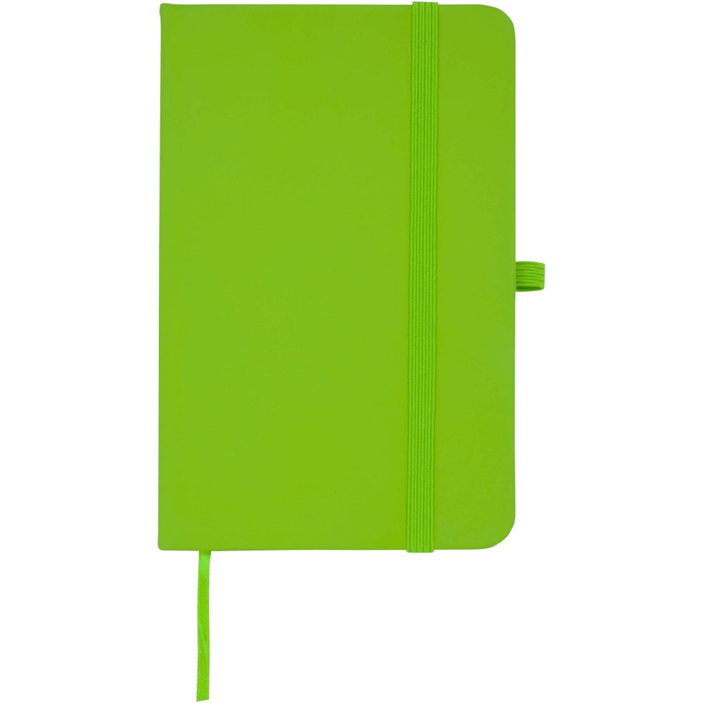 A Spectrum Plus A6 keményfedeles jegyzetfüzet lekerekített sarkokkal nemcsak az irodai mindennapok elengedhetetlen kelléke, hanem remek lehetőség márkád népszerűsítésére is. A jegyzetfüzet puha tapintású borítóval rendelkezik és 80 vonalas, krémszínű, 70 g/m2-es lapból áll, amely tökéletes gyors ötletek vagy hosszabb jegyzetek rögzítésére. A jegyzetfüzet tolltartó hurokkal, gumiszalagos záródással, könyvjelzővel és harmonikazsebbel van ellátva.