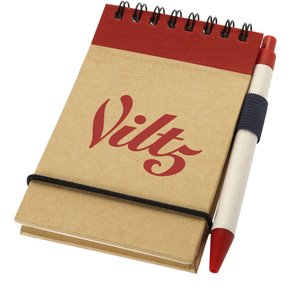Zuse újrahasznosított spirálnotesz tollal, natúr/piros