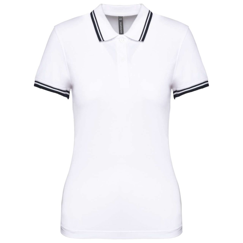 Kariban női rövidujjú galléros póló, White/Navy