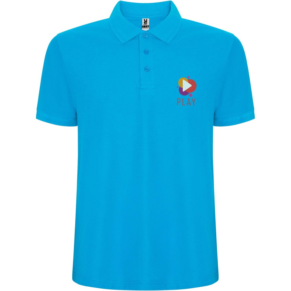 Rövidujjú galléros póló. A gallér és az ujjak passzéja 1x1 bordás anyag. A gallér megerősített, fedett varrásokkal. Oldalsliccelt. Levehető címke. Bolyhosodás elleni kezeléssel.