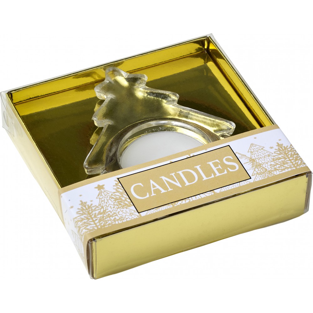 Fenyő alakú üveg gyertyatartó mécsessel. Csomagolása ajándékdoboz.