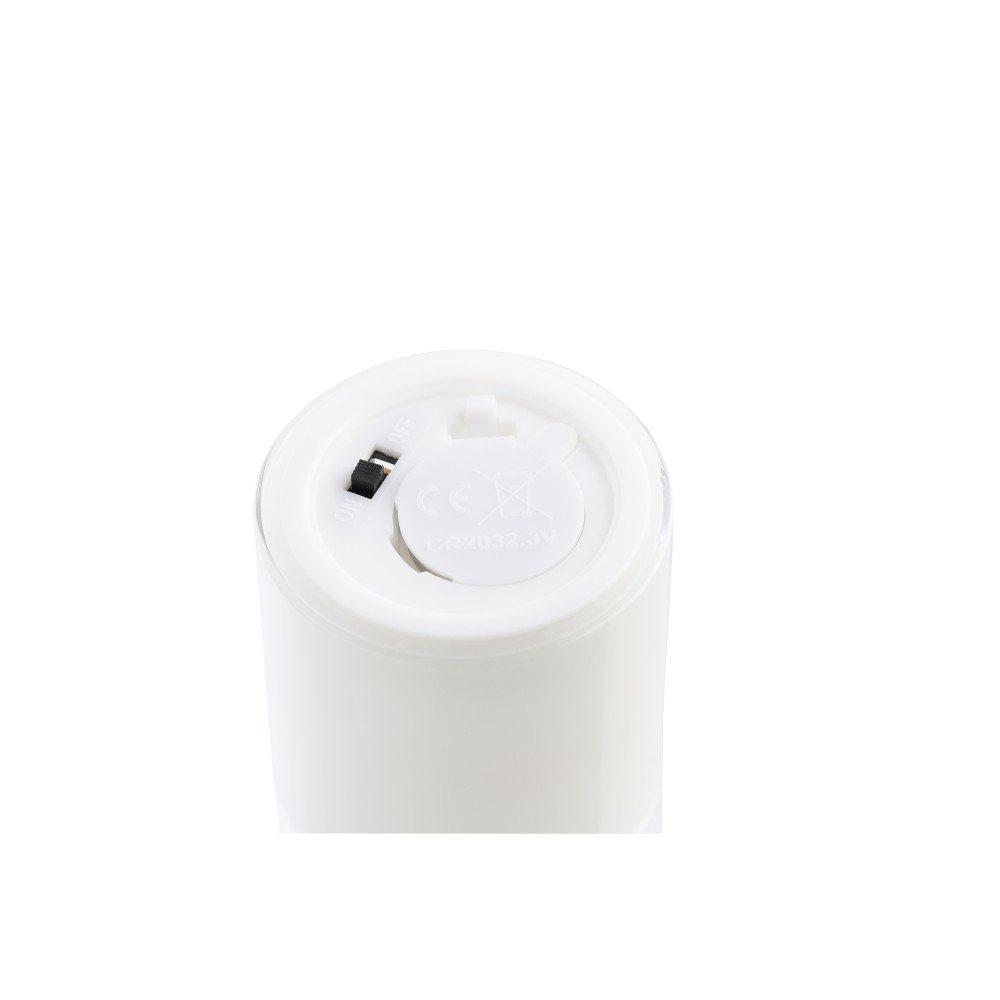 PP LED gyertya üvegtartóban, valósághű lánghatással. Elemmel együtt, körülbelül 100 órás égési idővel. Beltéri használatra tervezve. Egyenként csomagolva, barna kartondobozban.