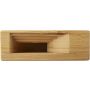 Bambusz telefontartó hangszóró funkcióval. Zenelejátszás közben az alsó részen keresztül erősíti a hangot áram vagy elem használata nélkül. Telefontartó nyílás méretei: kb. 8,2 x 1,2 cm. Egyenként barna kartondobozba csomagolva.