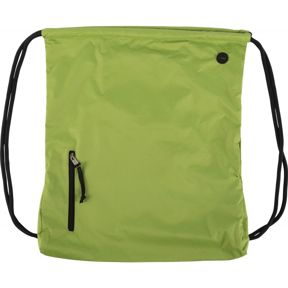 Tornazsák húzózsinórral, elöl cipzáras zsebbel. 190T nylon.