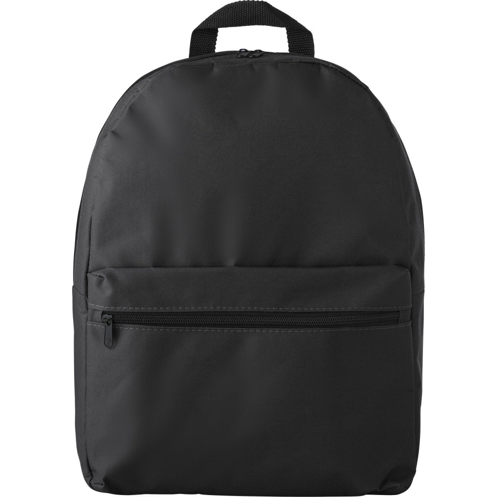 Hátizsák cipzáros elsőzsebbel, állítható, párnázott vállpánttal. 600D poliészter.