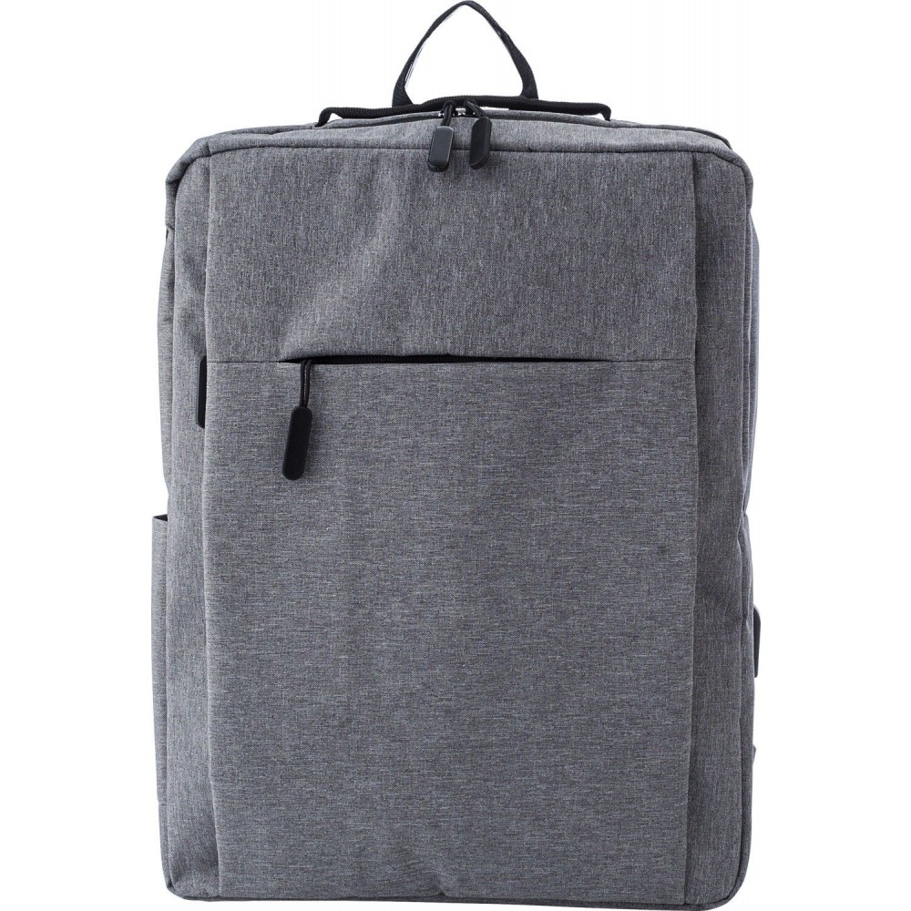 Hátizsák egy cipzáras fő rekesszel és első zsebbel. Oldalt USB kimenet. Állítható, párnázott vállpántok. 600D poliészter.