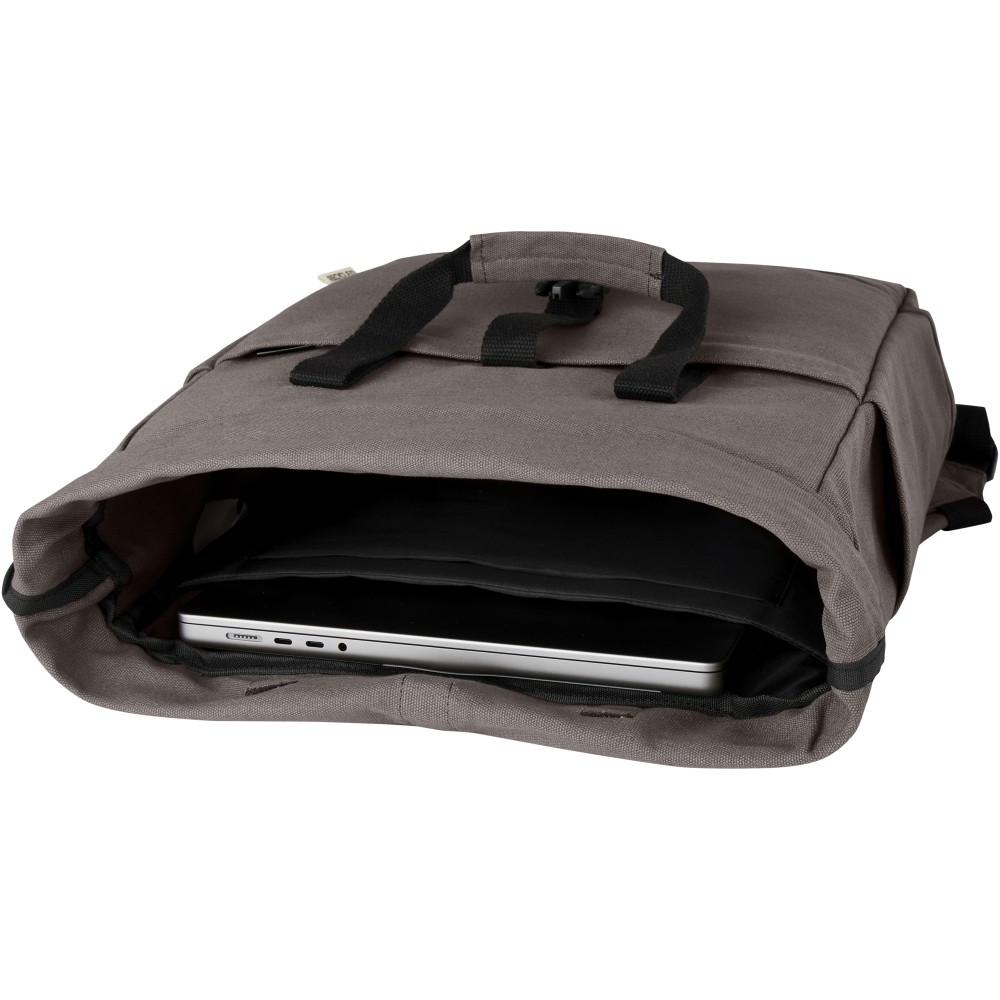 A rendkívül strapabíró és fenntartható anyagokból, GRS újrahasznosított vászonból és GRS RPET béléssel készült Joey kiskereskedelmi ihletésű rolltop hátizsák táblagép tokkal és 15 -es párnázott laptoprekesszel rendelkezik. A hátizsák 2 oldalsó palackzsebbel és egy cipzáras, nagy elülső zsebbel is rendelkezik. Zseb, valamint egy cipzáras rolltop nyílás a maximális tárolás és biztonság érdekében. A 2 megerősített hevederes fogó megkönnyíti és kényelmessé teszi a hordozását üzleti táskaként.