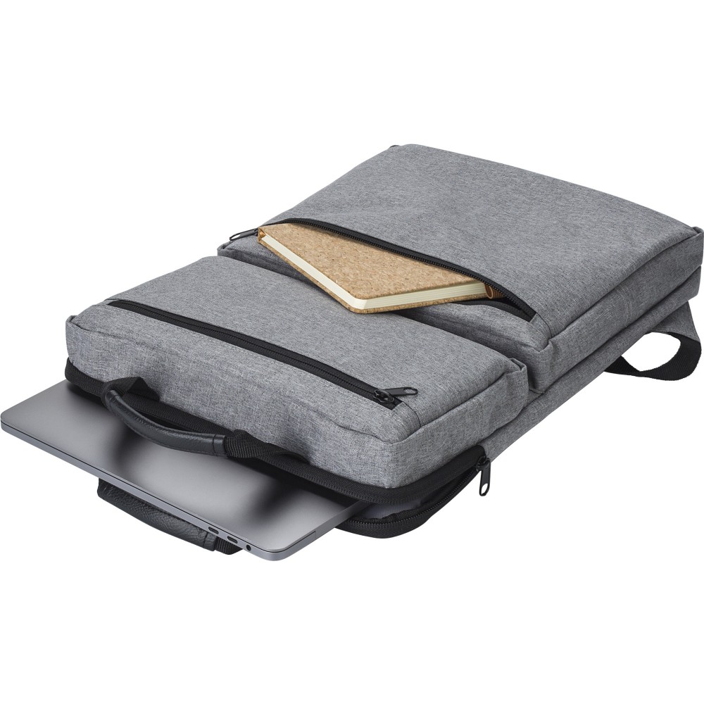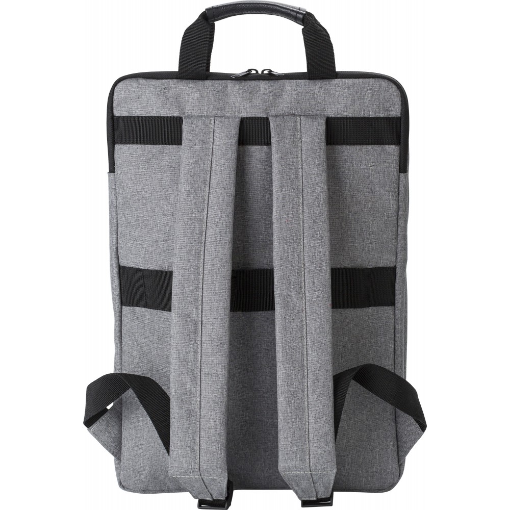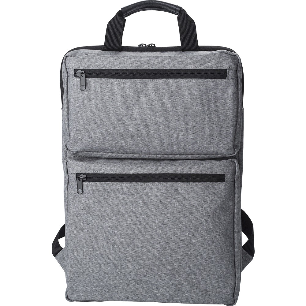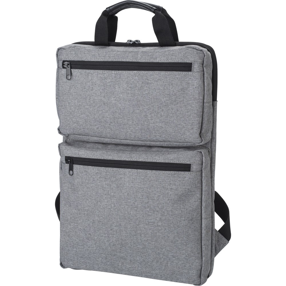 Hátizsák két külső cipzáras zsebbel és laptop rekesszel 15 -es laptop számára. Párnázott vállpántokkal és két rövid fogantyúval a tetején. Művászon 300D.